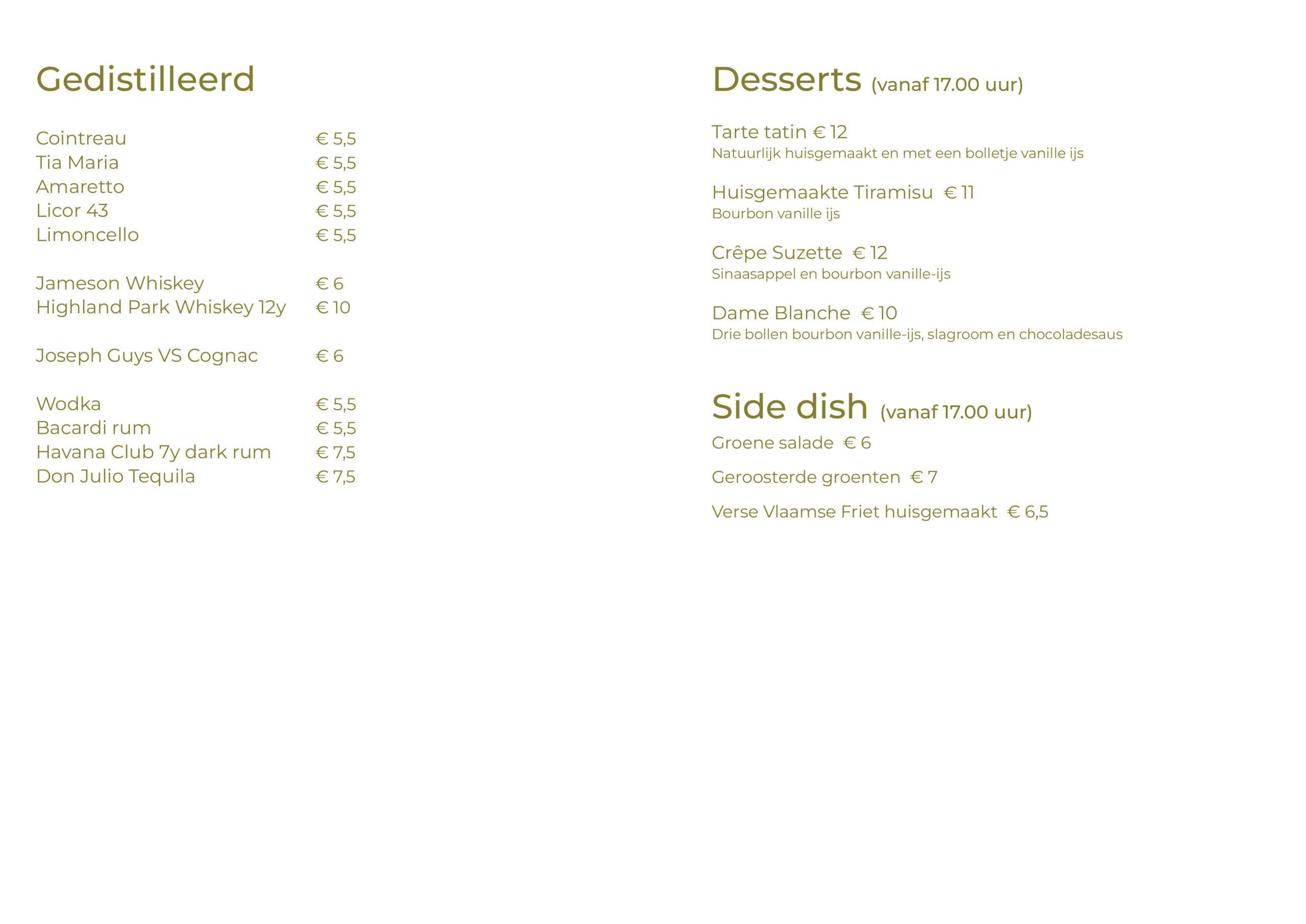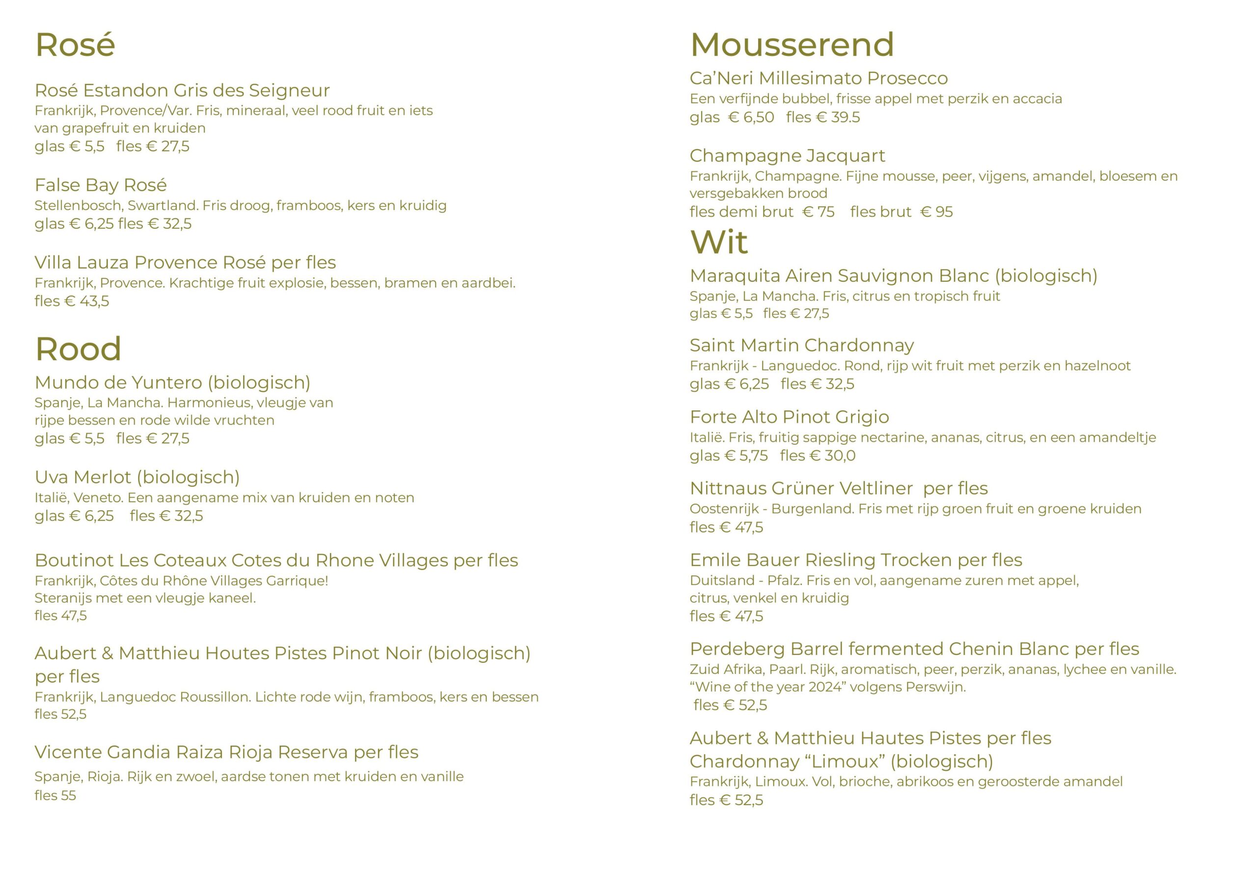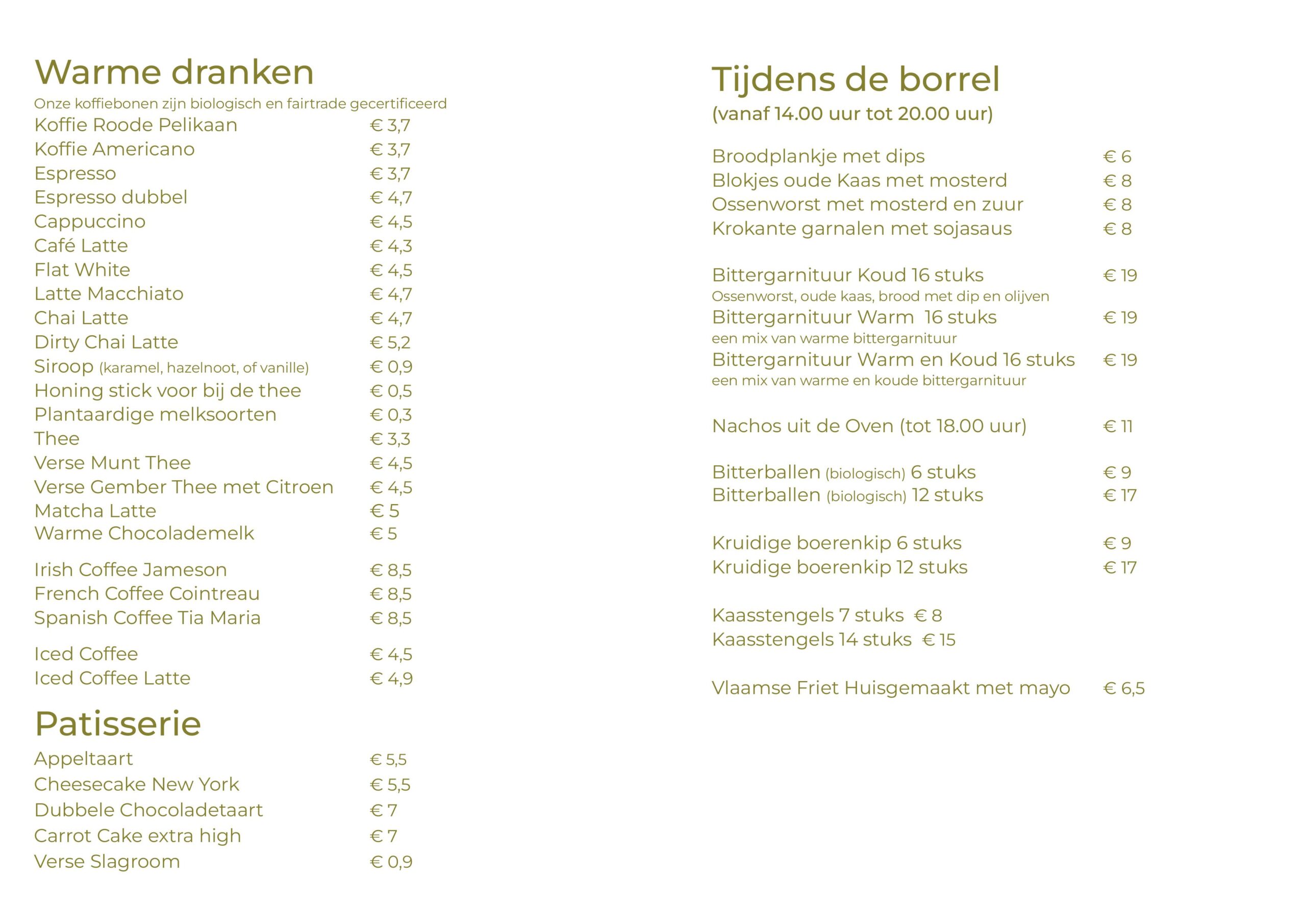 Onze keuken sluit een uur eerder. Op rustige avonden (zondag t/m woensdag) kunnen onze openingstijden iets korter zijn. We waarderen uw begrip!