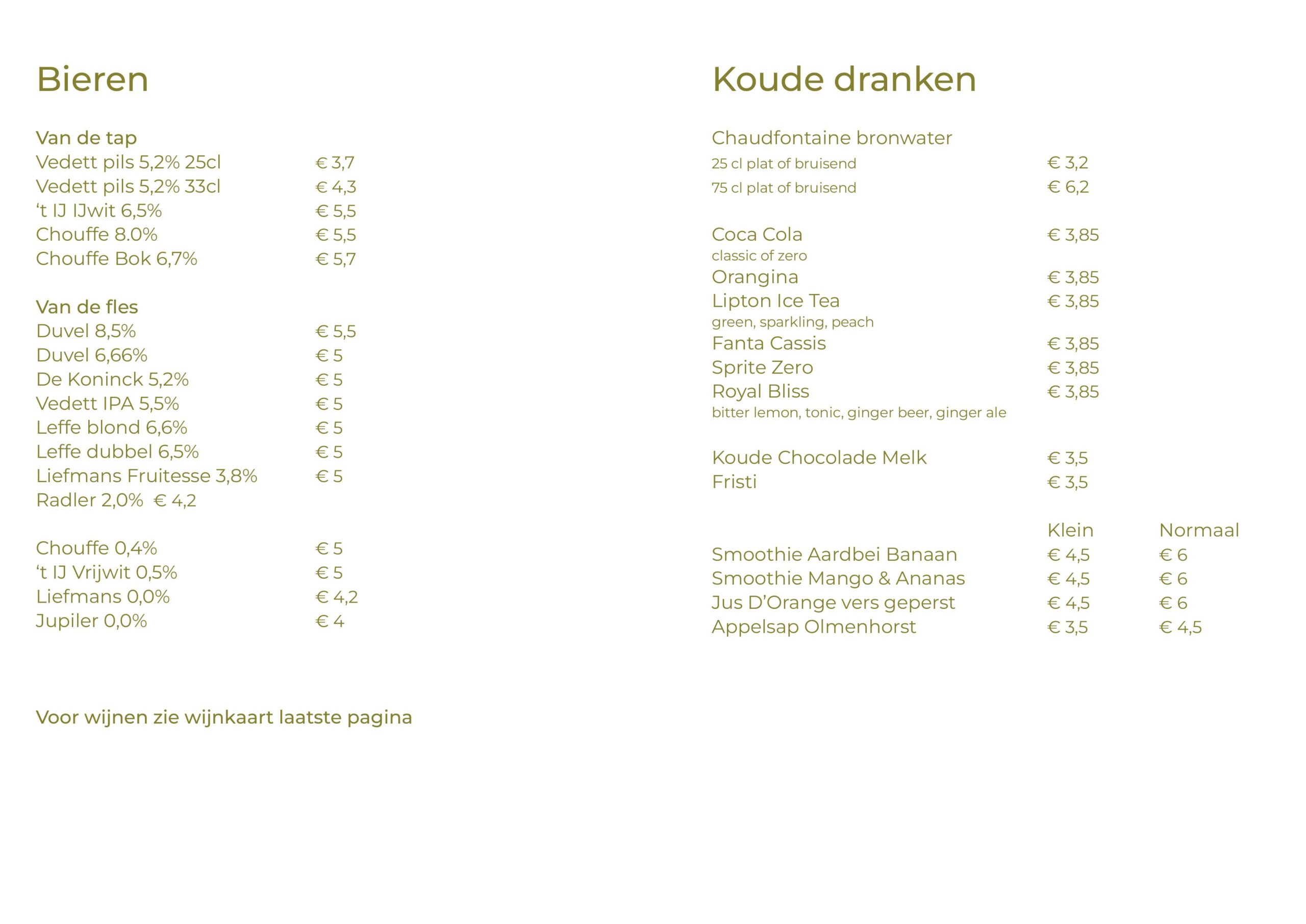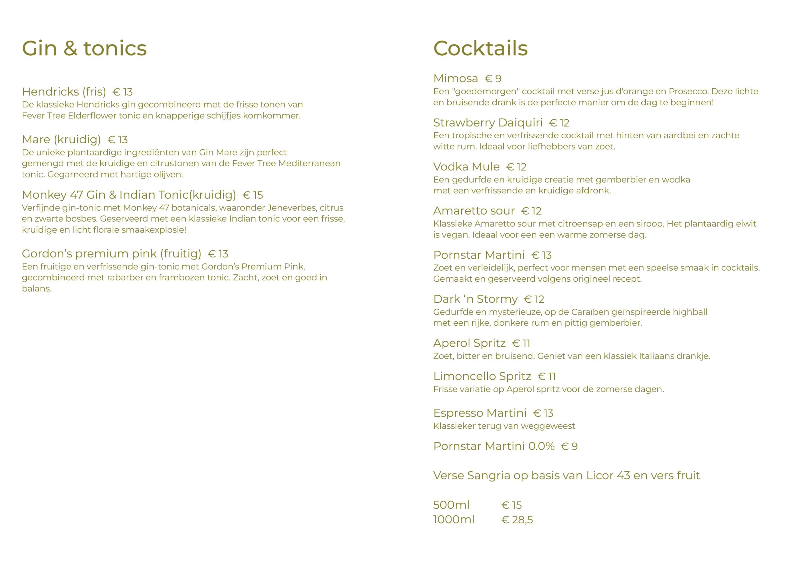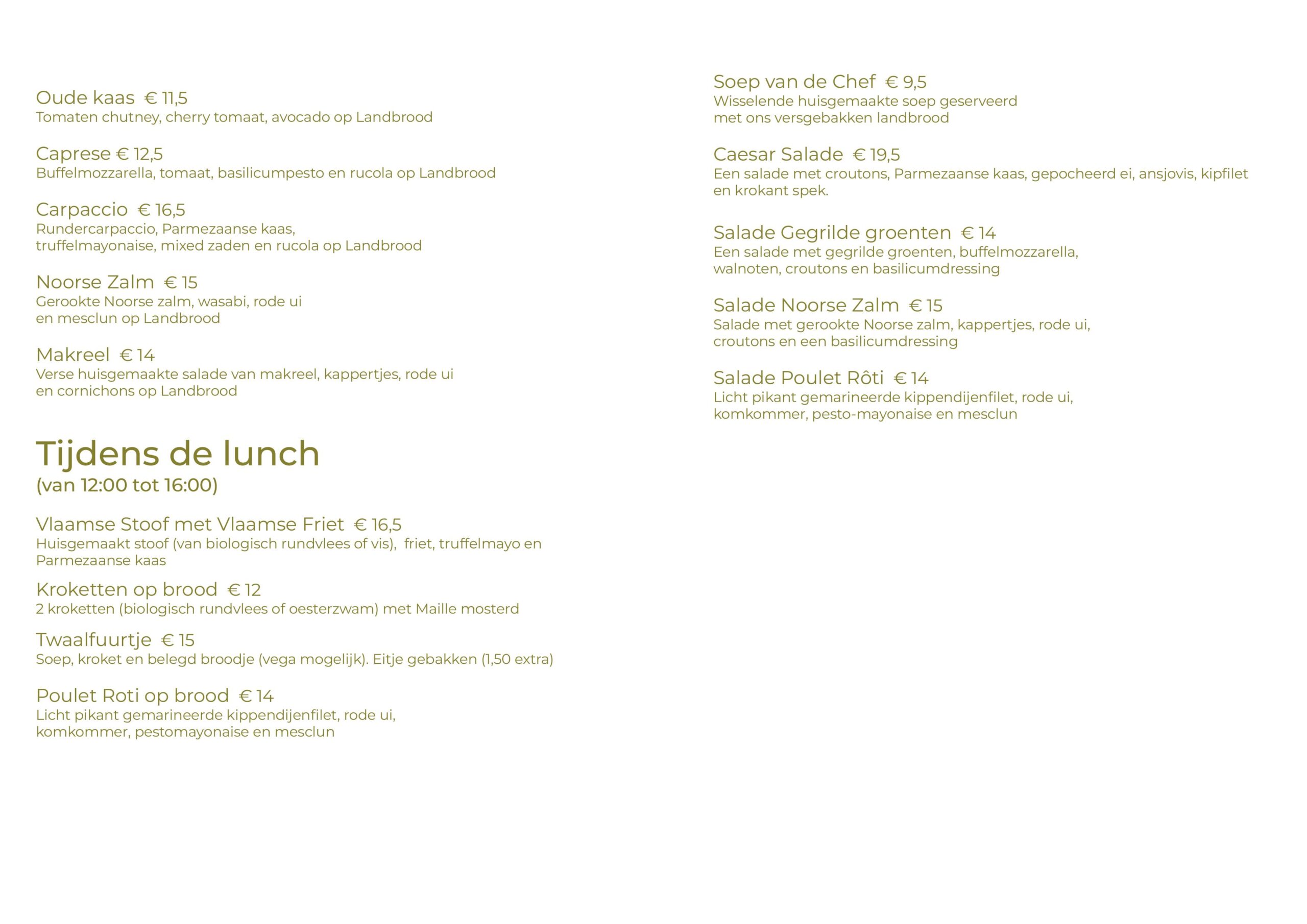 Onze keuken sluit een uur eerder. Op rustige avonden (zondag t/m woensdag) kunnen onze openingstijden iets korter zijn. We waarderen uw begrip!